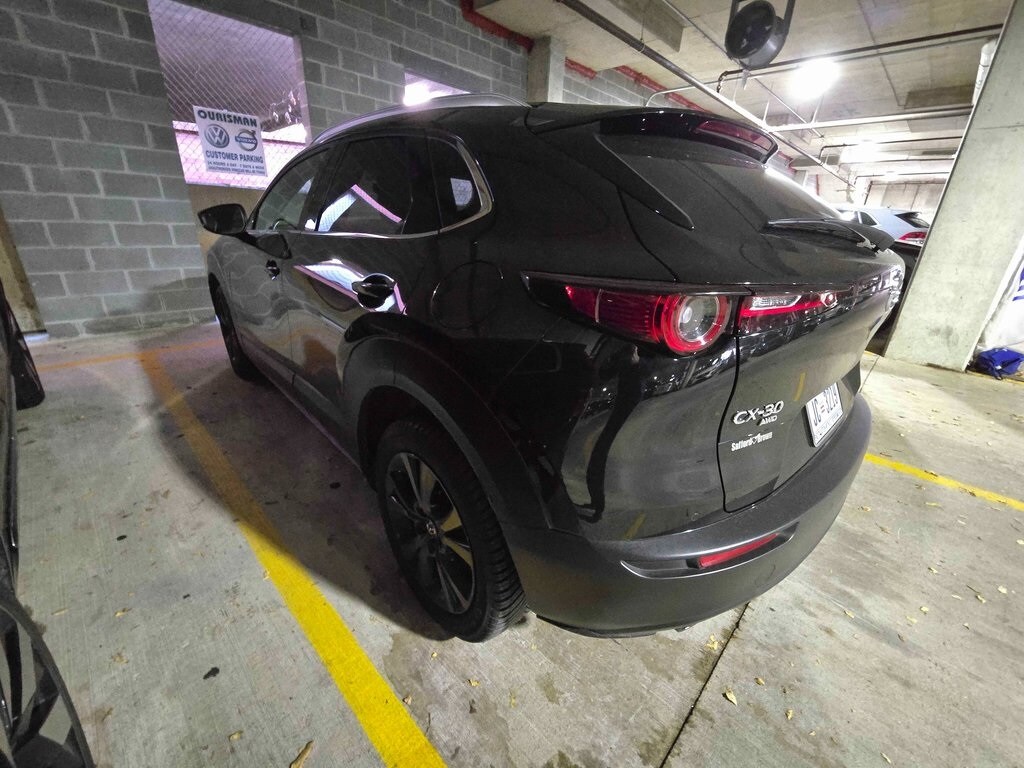 2023 Mazda CX-30 2.5 Turbo Premium Plus Package AWD Jet Black Mica MD State Inspected, Dial the Dealer Direct ...Call Paul, or text 240-731-0977, Best Family Car, Close to Reagan National Airport DCA, Preferred Washington Volvo and VW Dealer, Silver Spring, Washington DC, Rockville, Kensington, Dealer, DC Destination Vacation Dealer, 2023 Mazda CX-30 Turbo Premium Plus AWD a well-equipped, luxury compact SUV perfect for drivers in Washington DC and Bethesda seeking turbocharged performance, advanced safety, and premium comfort. Powered by a 2.5L Skyactiv-G turbo engine with 227 hp and 310 lb-ft of torque, this CX-30 delivers strong acceleration with Mazdas i-Activ all-wheel drive, G-Vectoring Control Plus, 6-speed automatic transmission, and confident handling in all weather., This Turbo Premium Plus comes loaded with features including 18-inch black alloy wheels, power sliding-glass moonroof, adaptive front lighting system, LED headlights and taillights, rear LED signature illumination, power liftgate, black heated mirrors with memory and turn lamps, roof rails, rain-sensing wipers, and shark fin antenna., Inside, the cabin offers white/brown leather seating, heated front seats, power driver seat with lumbar and memory, leather-wrapped steering wheel, heated steering wheel, dual-zone climate control with rear vents, Active Driving Display, illuminated vanity mirrors, frameless auto-dimming mirror, paddle shifters, and a 60/40 split rear seat. Technology includes an 8.8-inch center display, Mazda Navigation, Mazda Connected Services, rearview camera, Traffic Sign Recognition, Bose 12-speaker premium audio, SiriusXM trial, HD Radio, Bluetooth, Android Auto, Apple CarPlay, and two USB inputs., Safety features include Mazda Radar Cruise Control, Lane Departure Warning, Lane Keep Assist, Blind Spot Monitoring, Rear Cross Traffic Alert, Smart Brake Support, Driver Attention Alert, traction and stability control, tire pressure monitoring, advanced front airbags, knee airbags, side-impact airbags, and side air curtains., The Turbo Premium Plus Package adds front and rear parking sensors, Traffic Jam Assist, auto-dimming driver mirror, HomeLink, 360 View Monitor, Smart Brake Support Rear, and Rear Cross Traffic Braking. Additional options include cargo mat and black wheel locks/lug nuts., Finished in Jet Black Mica with a premium white/brown leather interior, this 2023 Mazda CX-30 Turbo Premium Plus AWD offers athletic performance, upscale design, and advanced safetyan ideal match for Washington DC and Bethesda drivers who want a stylish, compact SUV with premium features.. CARFAX One-Owner. For more info Call Paul; 240-731-0977. Odometer is 5787 miles below market average! 22/30 City/Highway MPG Clean CARFAX.